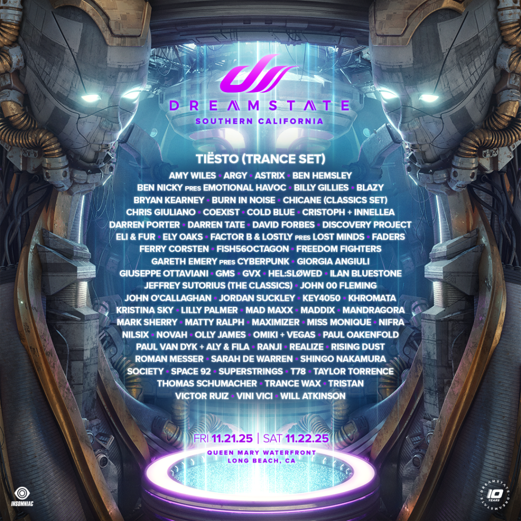 LONG BEACH, CA – Globally beloved pillar of trance music, Dreamstate SoCal, has just revealed the full 2025 lineup for its ten-year anniversary edition at the Queen Mary Waterfront in Long Beach, CA, taking place on Friday, November 21 and Saturday, November 22, 2025. For the past decade, Dreamstate SoCal has stood as a beacon for the trance community, offering a home for fans to experience the genre’s most transcendent sounds. This year, the festival celebrates its legacy with its most ambitious and immersive lineup to date.